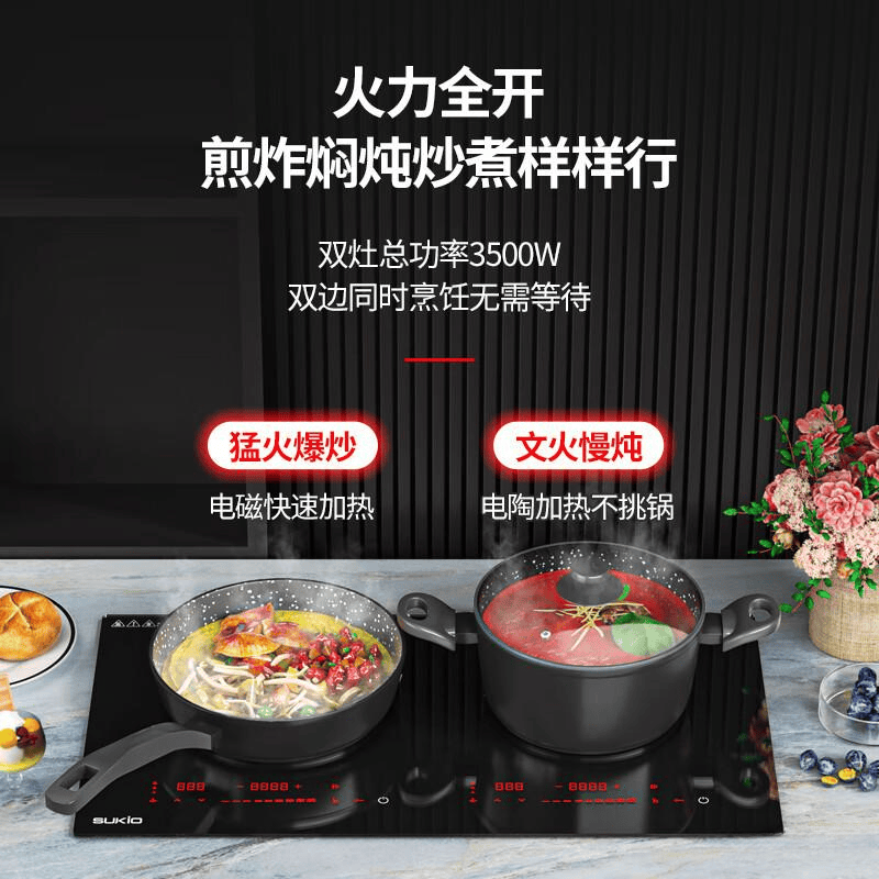 适合人群:追求烹饪速度和效率,又注重家庭安全的朋友们,这款双灶电磁炉绝对是你厨房的好帮手!